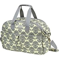This is a good option for moms who want good quality, stylish diaper bags, but don't want to spend a fortune. The fabric is nice, looks and feels more luxurious than it looks online. I was concerned it wouldn't fit all my necessities (for my toddler and newborn) but it did, with room to spare! And I tend to over pack and over stock, so it's great. I think the shape of the bag allows for roomier space inside. I never use that velcro changing set thing. I just keep it inside the bag as part of the inside organizer. I think the biggest complaint would be the 2 external pockets on the ends of the bag for bottles...I just wish they were slightly bigger. Since I use the Philips Advent bottles for my babies...they are wider, so bigger pockets would nice to have. Slimmer design bottles like Dr. Browns, etc. would fit just fine.Be aware -some of the photos of the exact same bag style, but different designs...will show a matching pacifier pouch. Although the Yellow Filagree design photo didn't show the pacifier pouch...I assumed it was included, but it's not. I called the manufacturer after receiving the shipment to verify, and they said they used to come included, but stopped that in the Fall of 2011. So now you have to buy it separate.I was really disappointed I liked the color, and I looked long and hard for one I liked. I thought that this was expensive, but my husband convinced me to get it. First, the pad that is the "included changing pad" is not. It is a piece of cardboard covered with fabric, AND pockets. So, when it is attached, you fill the pockets, but if you want to use it as a changing pad, you have to remove everything from the pockets! Also, the top is closed by two zippers, and a "handle". Its not easy to do with one hand, at all. However, I would have still given it 4 stars, because it has plenty of pockets, and I can make a changing pad. However, I used it for less than a month, and the stitching along the inside ripped open, and there is a big hole! I think it is a shame for the price that I paid!!