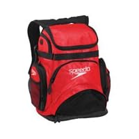 I bought this backpack to take with me on a recent trip to France. Purses always make my shoulder hurt and a backpack (with both straps on) is more difficult to snatch. This bag turned out to be just about perfect. The dimensions in the product info are a little off by my measurements it's about 14" L x 6.5" W x 15" H, the length being the amount of space it will take up along your waistline. The straps were very comfortable, there were lots of useful little pockets, and that big wide opening on the top was great. I was able to fit my netbook, a light sweatshirt, a bottle of water, my wallet, a French phrasebook, some sunscreen, and a few other odds and ends and still have some extra room for souvenirs. I really liked this top-opening design I have a full size backpack that zips all the way around the top and it's always flopping open while I'm trying to pack it up, but this one stayed propped open by itself just fine.One small issue is that the crescent-shaped pocket in the front (with the Speedo logo on it) actually goes all the way to the bottom of the bag. There are some narrow spaces on either side of that black mesh pocket on the bottom where something small can slide down and get stuck. I lost a few hairclips and some Euro cents down there. It was also a little hot to be wearing in the summer, but that isn't the bag's fault. The back has some nice padding so it was very comfortable other than the heat. I bought the silver one because it was the cheapest, and it's very nice. I was afraid it would be too shiny, but it wasn't an issue.Great for a pair of shoes and briefs, but don't even think of packing a large towel with shower clogs, soap, and sunglasses. Very convenient, nice array of pockets, good quality zippers.The perfect size for swim class and fits a whole lot more. Gorgeous color, it really stands out cause it is so different. looking for another one!