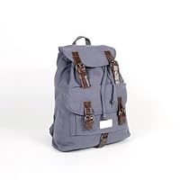 This is a really solid canvas pack. The grey is slightly darker in person. It's aesthetically pleasing and is big enough to hold my laptop and e-reader. I really like the hidden pocket on the side. The only problem I've really had is the fabric on the inside; the color runs when it gets wet. Other than that, I really enjoy this!