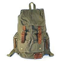 - KHAKI (More like a Green Bag)Rucksack-Styled Thick Canvas Backpack Great for School and Camping,Genuine Leather Straps