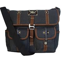 Military Inspired Black Canvas Messenger Bag Laptop Bookbag