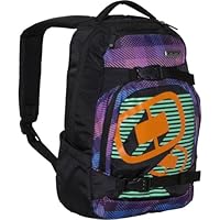 This bag is just what I needed. Its a little on the small side which is what I wanted. It does have extra straps on front for a skateboard, but I don't use those. Has a pocket on one side for a good sized water bottle, but only one. The smaller pocket has pockets and flaps to help hold small things. Has only 1 zipper on the smaller outer part of the pack, so be sure to close it or stuff will fall out. Has a flat divider for a laptop in the main section. The design is a little odd but I like it since it stands out quickly from other peoples bags and I can grab it quickly when its mixed in with others. It has a cassette tape pattern under the other patterns, retro I guess. So far is very durable and fairly comfortable.