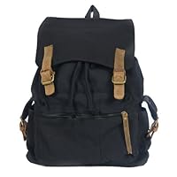 Buy Black Canvas Backpack School Bag Super Cute for School (Thick Canvas ,Genuine Leather Straps, and B Now