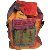 I love this bag! Smells just like burlap. And it's bigger than I thought. Still absolutely perfect. FIVE STAR BAG!!My bag completely fell apart at the seams. there are no pockets inside. the buttons on the outside of my bag also fell off and i could not put anything in the outside pockets because they didn't close well enough. could have bought a better bag for cheaper. i did get lots of compliments on it though. ALSO... this bag gets lint everywhere. i could not wear black clothing because there would be lint everywhere.i loved the looks of this backpack but if you are looking for storage it isnt too good. and also after using it for half a year it started to get shredded up. otherwise if you want a bag to take to the beach or a sleep over or something (not day to day) i found it to be good!