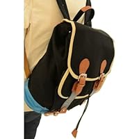 Buy BLACK Canvas Backpack School Bag PU Pleather Trim Two Tone Now